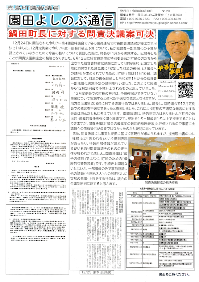 園田よしのぶ通信No20を発行します。